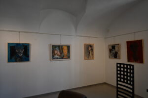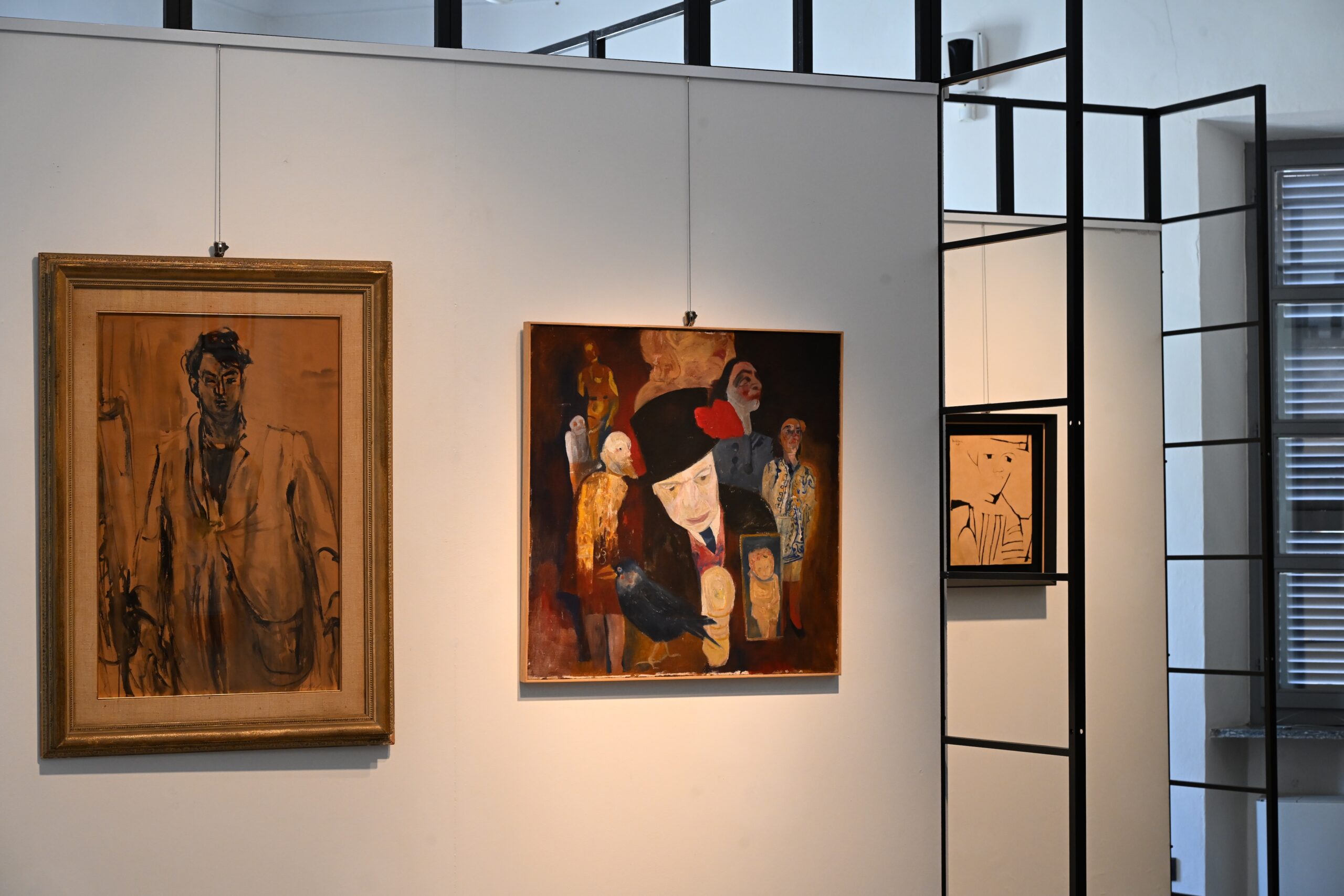 Tra i dipinti, emergono quello di bizzarra espressività di Carol Rama, il piccolo ritratto della moglie di Menzio e uno molto intenso della modella  di Calandri, accompagnato da un disegno preparatorio delineato con altrettanta sensibilità. Un altro ritratto di modella, ma decisamente più ludico e un po’ osé è Vittoria sul cavallo di gesso di Cremona. I visitatori troveranno particolarmente interessante il confronto fra gli introversi autoritratti di Lattes e quelli di alcuni di questi artisti, tra cui quello ironico in canottiera di Cremona, quello carico di vitale tensione segnica di Spazzapan, quello intenso e melanconico di Maugham, o ancora l’onirico Risveglio con la madre di Levi, dove il pittore si rappresenta con un solo occhio aperto.